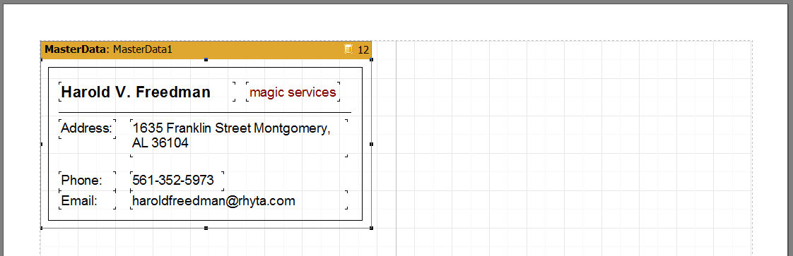 Since we do not use the database in the MasterData band, we need to manually set the number of records in the properties of the band. In our case - RowCount = 12. Let's look at the report in the preview mode:
