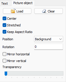 | Stretched | If set, the image is stretched to fit the page, otherwise the original image size is used |