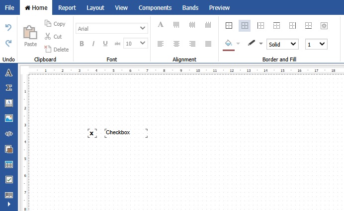 Die Version 2026.1 wurde um die Checkbox-Komponente für Berichte im .fr3-Format (FastReport VCL) erweitert. Diese Komponente stellt ein Boolesches Feld dar, mit dem Sie in Berichten einen Ein-/Aus-Status anzeigen können. Die Checkbox kann auf Berichtsseiten verwendet werden, um Boolesche Werte aus Datenquellen zu visualisieren oder um mit Benutzern interaktiv zu agieren. Die Komponente unterstützt alle grundlegenden Eigenschaften von FastReport VCL, einschließlich der Anpassung des Erscheinungsbildes, der Datenbindung und der Ereignisbehandlung.