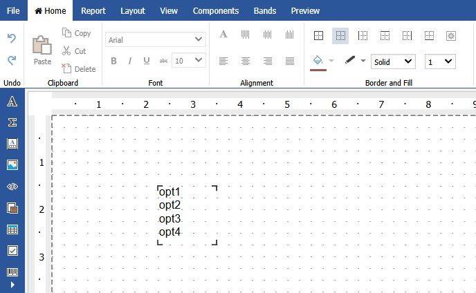 Der FastReport Online Designer ermöglicht es Ihnen nun in .NET-Lösungen, die Breite und Höhe der Label-Komponente anzupassen, wenn die AutoSize-Eigenschaft deaktiviert ist. Bisher passte sich die Label-Komponente automatisch an ihren Inhalt an; jetzt können Sie feste Abmessungen für die Komponente festlegen. Dies gibt Ihnen mehr Kontrolle über das Layout von Elementen in Dialogformularen und ermöglicht die Erstellung einer vorhersehbareren und einheitlicheren Benutzeroberfläche.