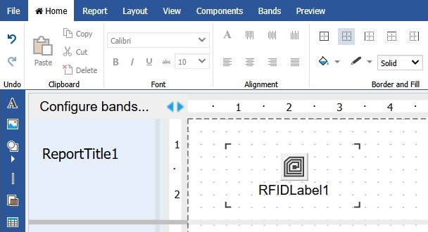 Für FastReport VCL-Berichte wurde eine RFID Label-Komponente implementiert. Diese ähnelt der RFID-Tag-Komponente, ist jedoch an das .fr3-Format und die VCL-Architektur angepasst. Mit dieser Komponente können Sie RFID-Tag-Parameter direkt im Berichtsdesign für Etikettendrucker konfigurieren, die RFID-Technologie unterstützen.