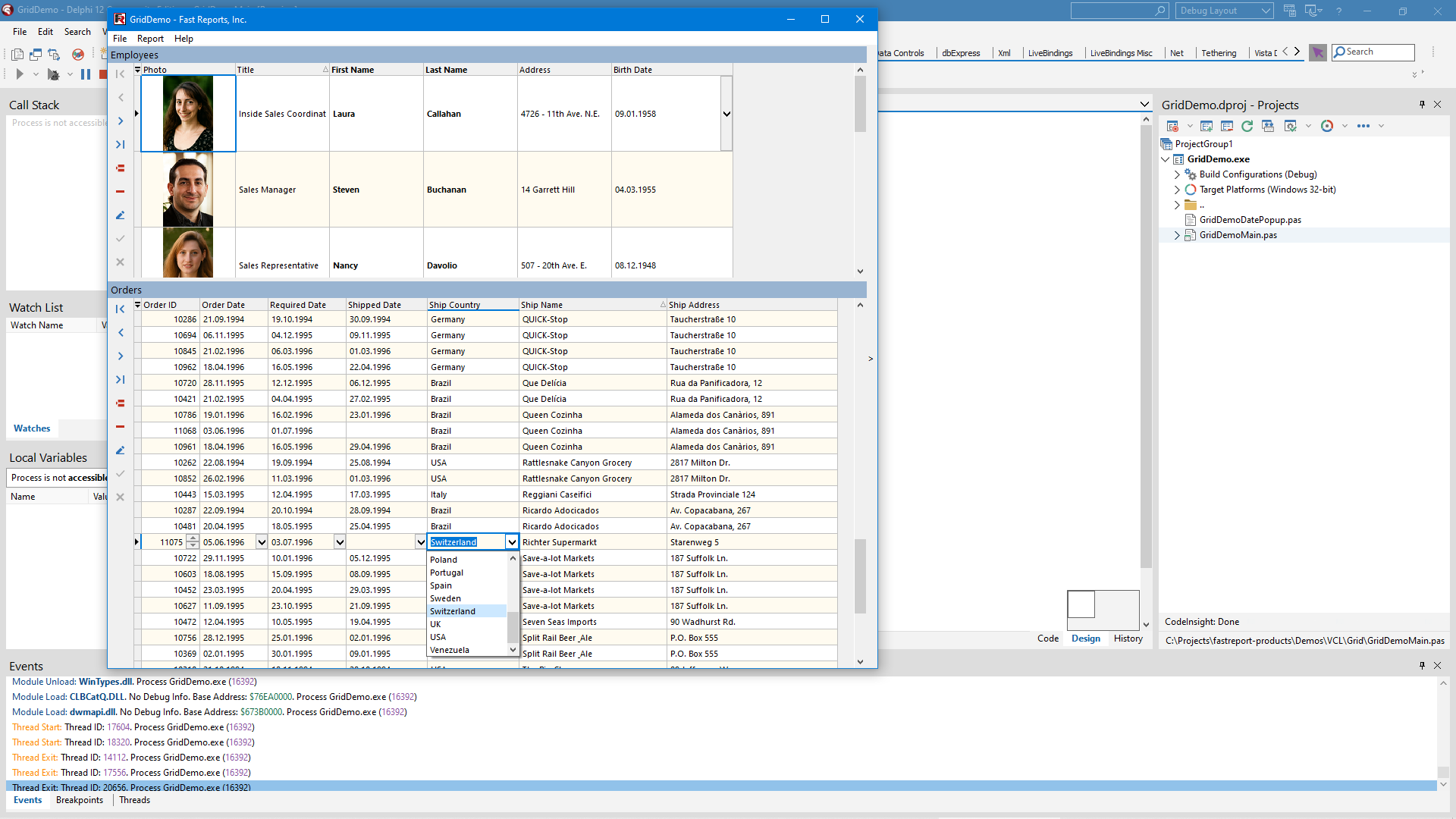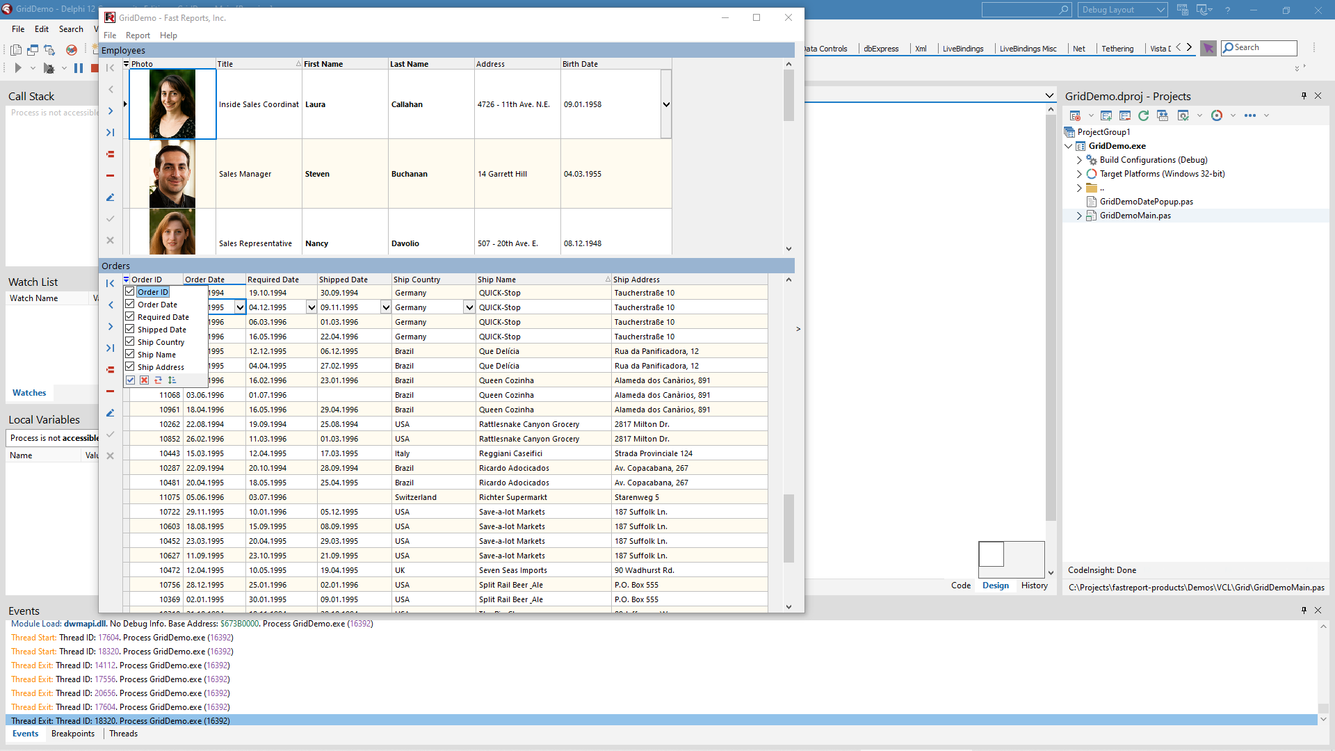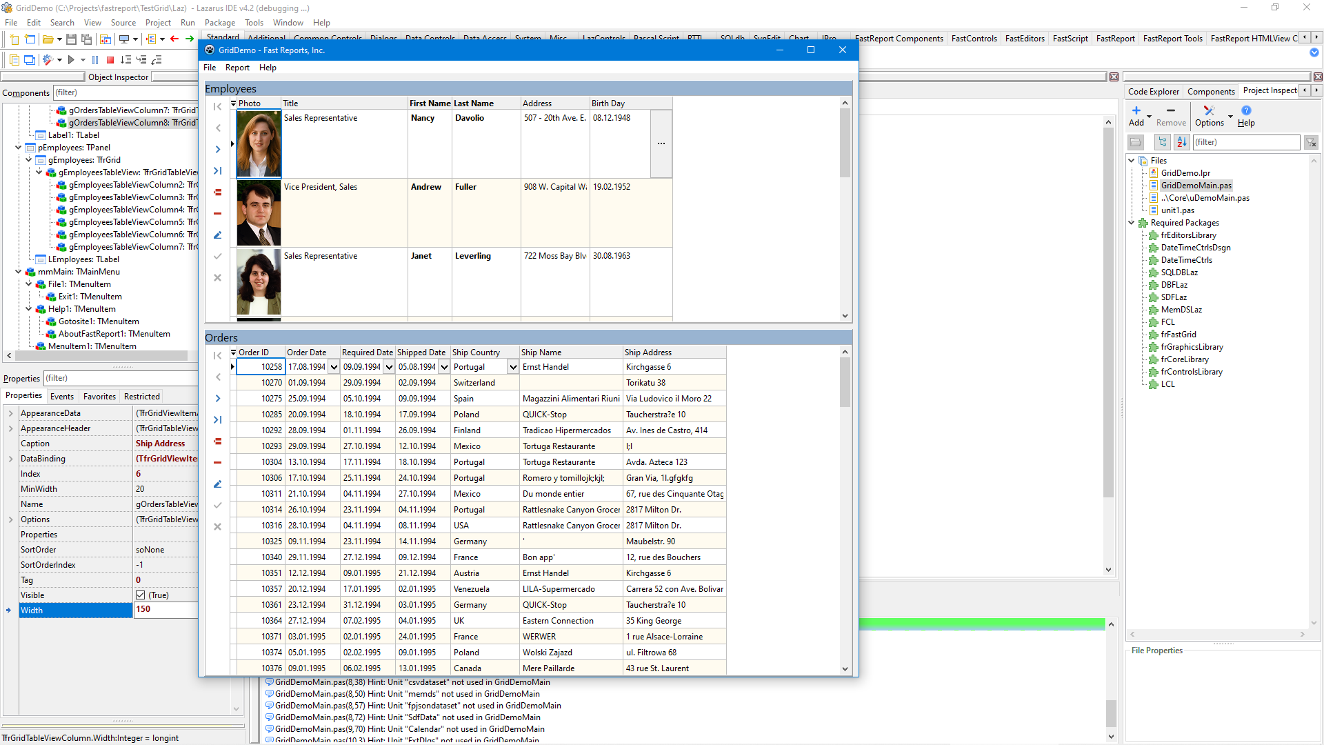 Die aktuelle CTP-Version des Produkts bietet Funktionen wie VCL- und Lazarus-Unterstützung, Datenbankverbindung über die TDataSource Standardkomponente sowie Datenbearbeitung, -sortierung und -filterung. Im WYSIWYG-Modus können Sie die Reihenfolge und Breite der Spalten ändern sowie die Benutzeroberfläche zur Entwurfszeit einfach anpassen.