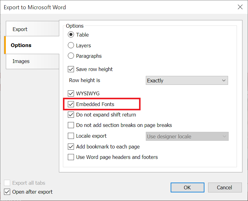 Our Microsoft Word export now includes a new "Embedded Fonts" option: