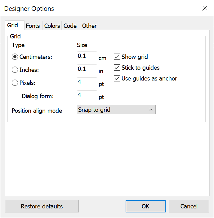 Now you can use the “Snap to Grid” alignment mode. In this mode, objects always snap to the grid when moving or resizing. Previously, the grid step was used for objects, meaning they could be moved off the grid if they weren’t initially placed on it. By default, the old “Grid Step” mode remains active. The new mode enables precise object alignment even in existing reports.