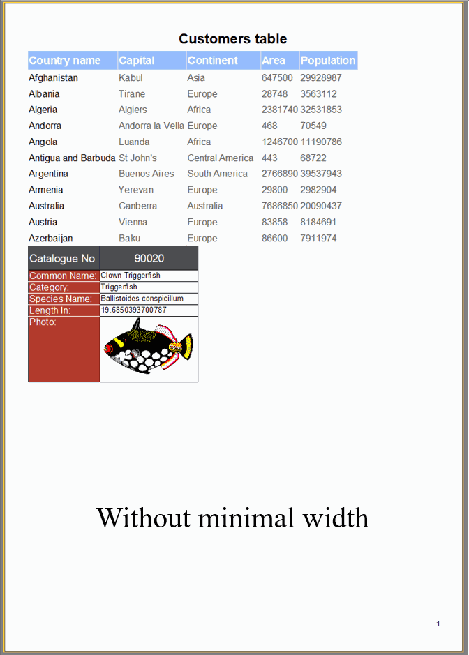 The reporting engine is constantly being improved, offering more and more tools for report creation. The dynamic table builder has received two new properties: FitPartsToPageWidth and MinimumTableWidth. These help manage the pagination process of tabular reports. Using the FitPartsToPageWidth property, you can stretch each part of the table to the maximum page width, filling the free space.