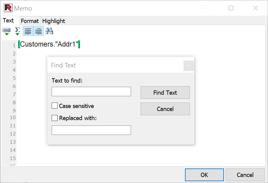 FastQueryBuilder now features search and replace functions in its editors, just like the report designer.
