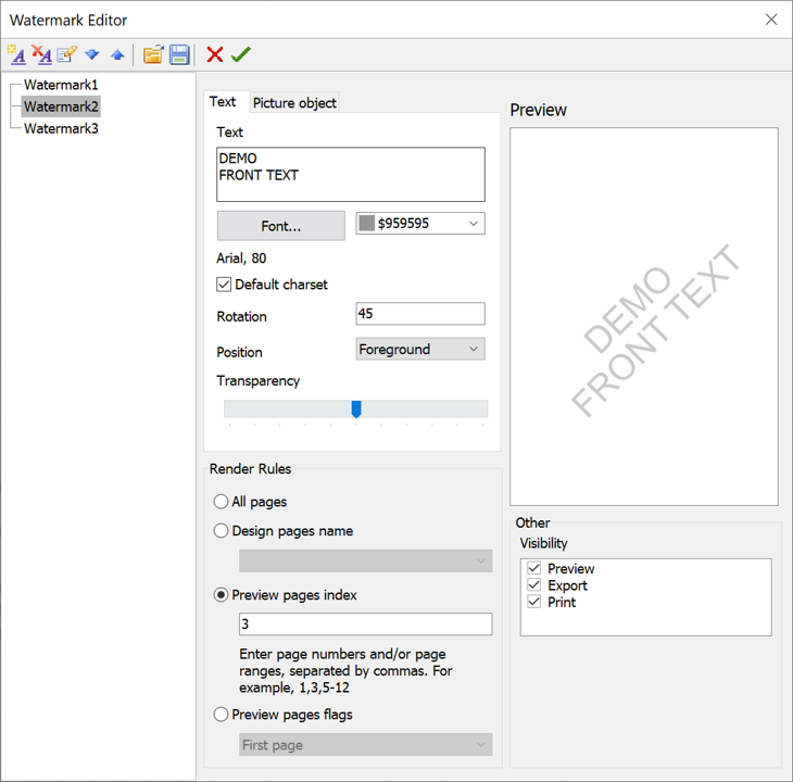 + The TfrxWatermarks.Add method is now available in the script.