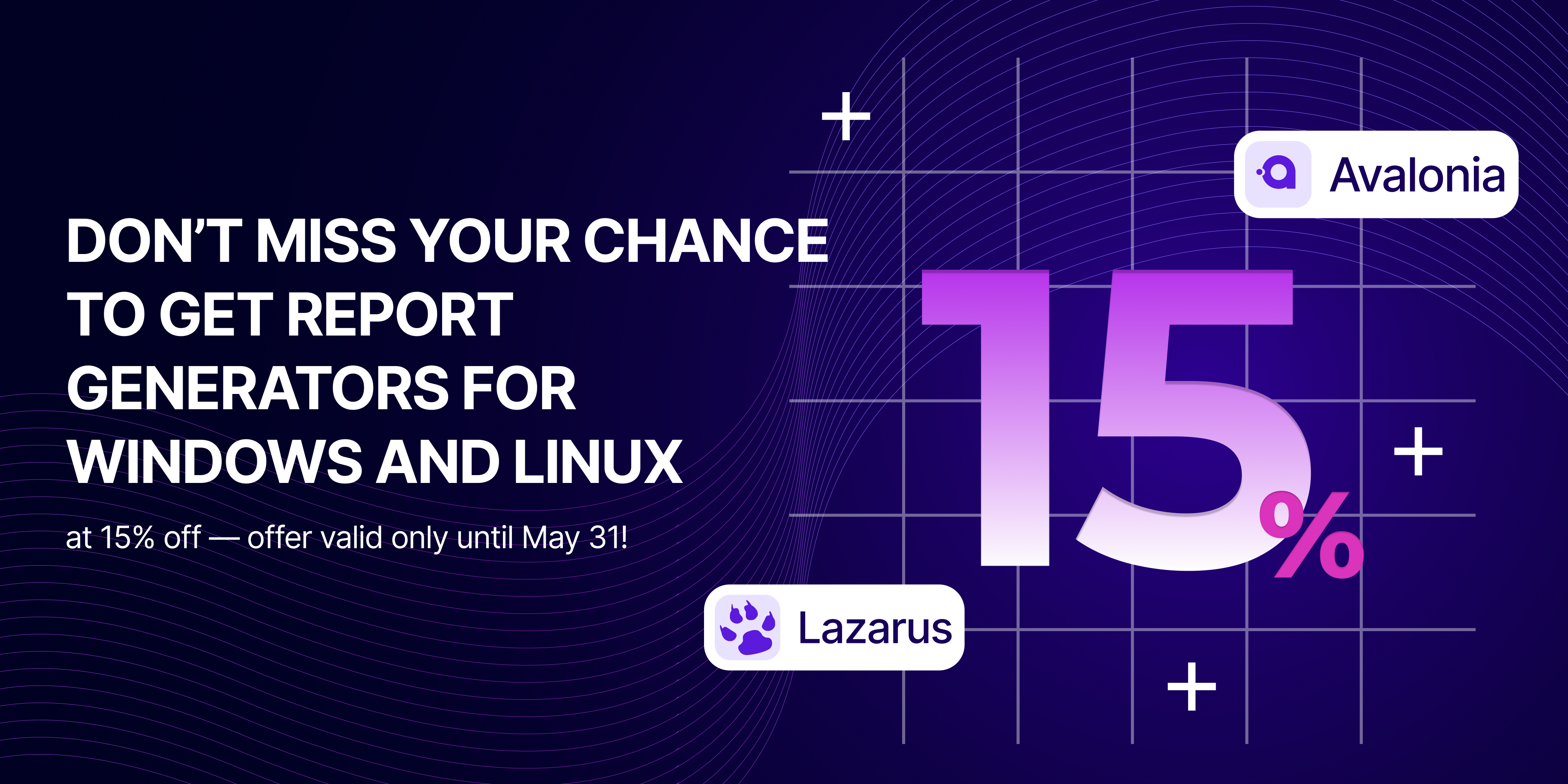 Until May 31, take advantage of our limited-time offer — 15% off FastReport .NET Avalonia and FastReport VCL Reporting Lazarus! If you need a powerful reporting tool with Windows, Linux, and macOS support, this is your chance to deploy a reliable solution at a great price.