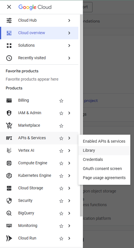 Em seguida, abra o menu lateral e vá até a seção “APIs & Services”, subseção “Library”. Aqui, é necessário ativar o acesso à API do Google Planilhas – essa permissão permitirá que seu aplicativo interaja programaticamente com as Google Planilhas.