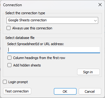 A conexão com o Google Planilhas é implementada por meio de um plugin, portanto, ele deve ser compilado antes da configuração. O projeto está localizado na pasta "Extras\Core\FastReport.Data\FastReport.Data.GoogleSheets."