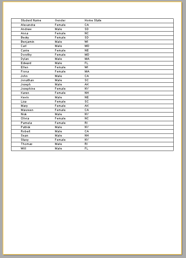 Um exemplo do resultado final do trabalho com o Google Planilhas no FastReport.NET — os dados recuperados com sucesso de uma planilha na nuvem são exibidos no relatório.
