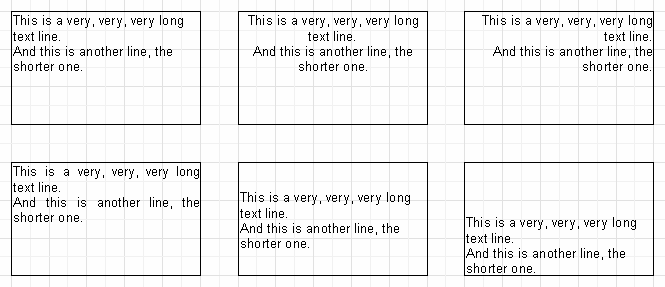 Now let’s see how text alignment inside the object works. Alignment buttons are located in the "Text" toolbar and control horizontal or vertical text alignment. Note the “Justify” button which lets you align paragraphs to both object edges - to do this WordWrap must be enabled.