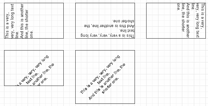 When rotating text to angles other than 90, 180 or 270° the text may be cut off by the frame of the object, as shown below. To cure this increase the object height a little so that all the text fits within the object.