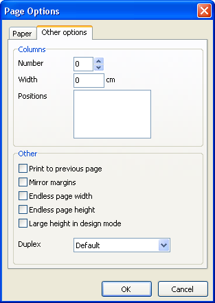 The “Print to previous page” flag allows you to print pages without starting a new page, instead beginning in any blank space on the previous page. This option can be useful when a report template consists of several pages or when printing batch (composite) reports.