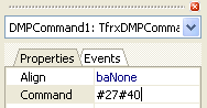 Place the “ESC-Command” object at the correct place on the report page, before any objects which use the non-standard attributes (e.g. in the top left corner of the page). To set a command edit the Command property of the object in the object inspector:
