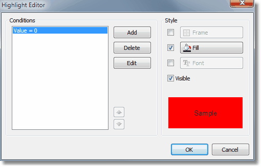 In case where several conditions have been indicated, FastReport checks all the conditions, starting from the first one. If a certain condition is met, FastReport applies its style settings to the object, and the process stops.
