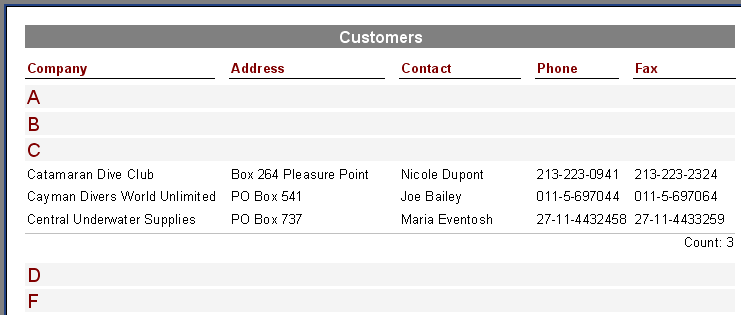 The group header has a property called DrillDown. If you set it to True, the group becomes interactive. This means you can click on the group header in the preview window and the group will expand (display all records in the group) or collapse (display only the header and, if ShowFooterIfDrillDown is True, the footer).