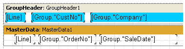 Let's use our example to show how to number the lines in a group. To do this, we add a “Text” object containing a system variable [Line] to both of our bands (this is most easily done by dragging & dropping from the “Variables” tab of the “Data Tree” pane).