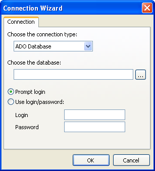 button which opens the standard Windows connection dialogue for setting the database and connection parameters. After this the user name and password can be set, if necessary.