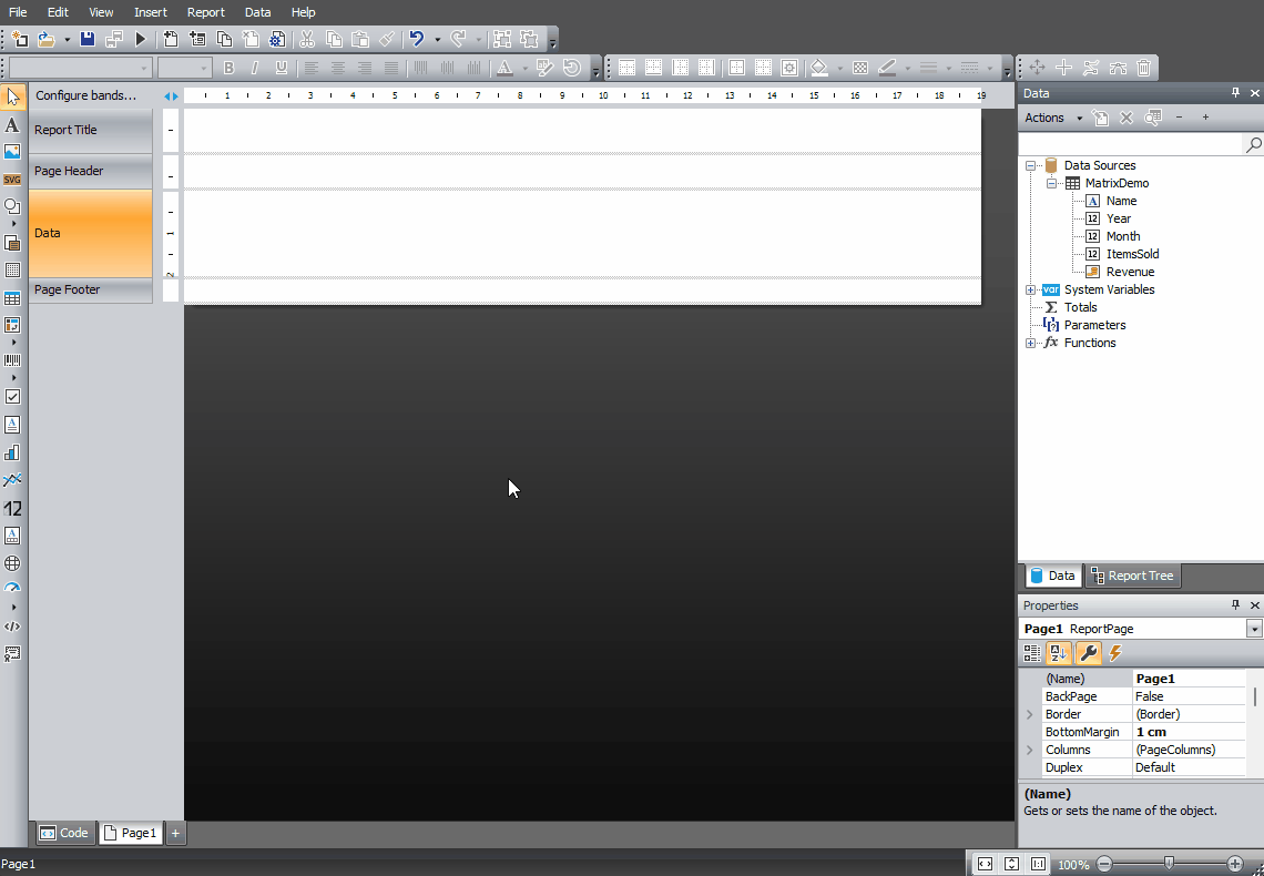 Example 4. Interactive Sorting Adding interactive sorting buttons, adding a second database field to the data area (ItemsSold), configuring interactive sorting by this field.