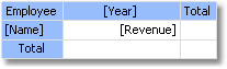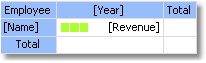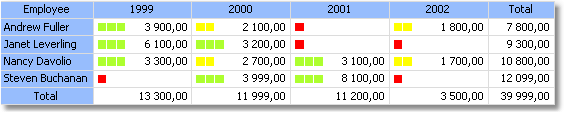 Using objects inserted into matrix cells you can have various visual effects. We will show in the following example, how to draw a simple scale indicating employee's sales level.