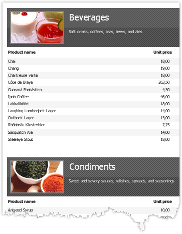 Let us look at an example of a report, which prints a list of categories and products in each category: