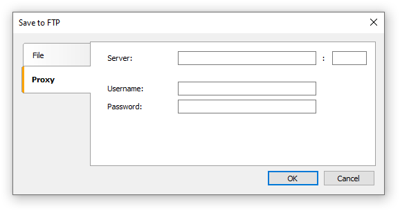 Press "Save" button and select "FTP...". This opens the "Save to FTP" window: