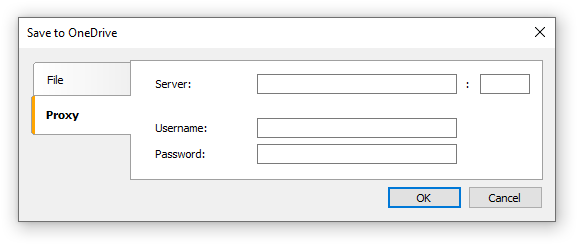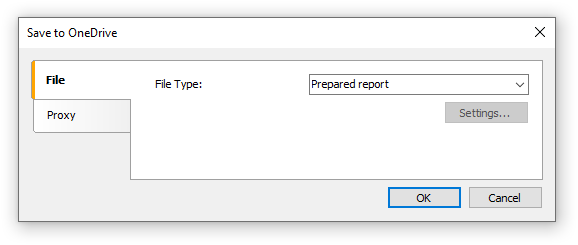 The "Save to OneDrive" window has two tabs : File and Proxy: