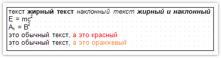 текст <b>жирный текст</b> <i>наклонный текст</i> <b><i>жирный и наклонный</b></i>