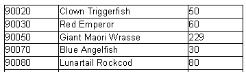 Datendruck in Form einer Tabelle