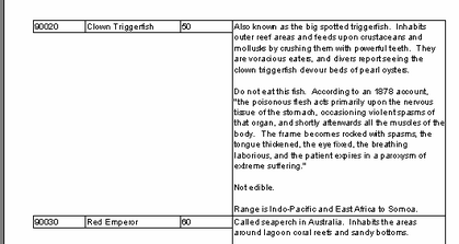Oft ist es notwendig den Report in Form einer Tabelle mit Umrandung darzustellen. Ein Beispiel hierfür ist die Preisliste. Um einen solchen Report in FastReport zu erstellen, muss man lediglich die Umrandung der Objekte auf dem Band „MasterData“ einschalten. Betrachten wir ein paar Beispiele am einen Report mit Text.