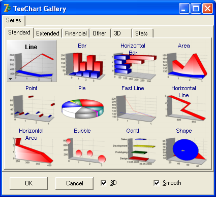The component is based on the “TeeChart” library which is included in Delphi distribution kit. Alternatively the “TeeChartPro” library can be purchased separately.