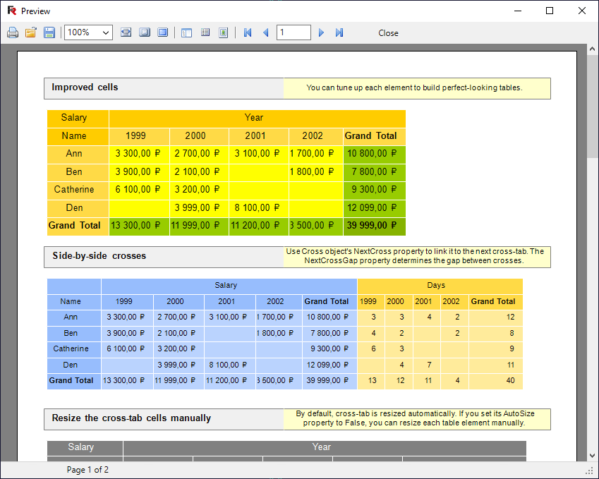Print Report Prints the report. The keyboard shortcut is Ctrl+P. (not available in FastReport Viewer)