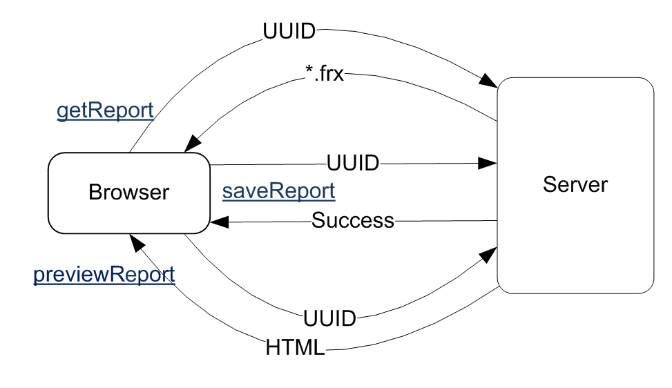 Thus, FastReport Online Designer positioned as an editor of .Net reports that have already been created and placed on any UUID on the server. Online designer communicates with the server through a specified pre-API, which includes 3 requests: