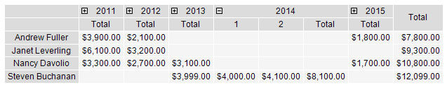 When you click on a button in the preview window, related elements are hidden or shown. In this case, the report is rebuilt: