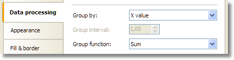 The chart, as well as other report objects, can be interactive. You can set up chart in the way, that when you click its value, another (detailed) report will be executed and shown. To do this, you need to set up the "Hyperlink" property as described in the "Interactive reports" chapter. The chart will pass the value to a hyperlink by itself, when you click on its element.