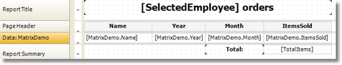 - in the "Data" window, create a new report parameter called "SelectedEmployee";