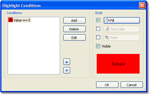 In case where several conditions have been indicated, FastReport checks all the conditions, starting from the first one. If a certain condition is met, FastReport applies its style settings to the object, and the process stops. It is important to put the conditions in a correct order. The order which we have seen in this example is correct:
