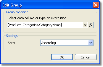 You need to set the group condition. This can be any expression or data source column. Also choose the sorting. By default, data is sorted in ascending order.