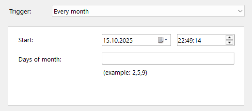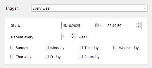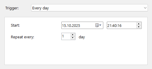 - On you computer start (time and recurrence settings are hidden for this option):