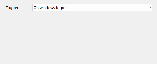 - On windows log on (time and recurrence settings are hidden for this option):